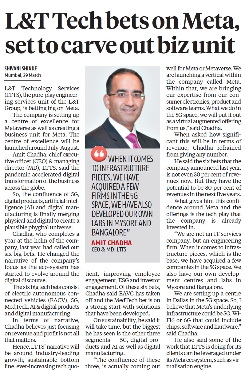 L&T Technology Services Secures $50 Million Deal as a Strategic Partner from a global Network Provider