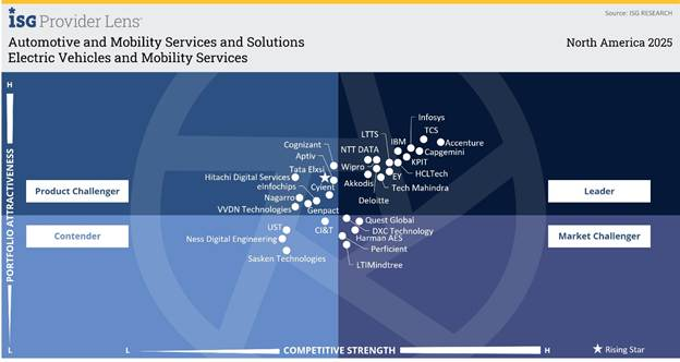 LTTS has been recognized as a Leader in Automotive and Mobility Services and Solutions – Electric Vehicles and Mobility Services – North America by the ISG Provider Lens™ report for 2025. Our comprehensive solutions and commitment to innovation empower automotive partners to accelerate the shift toward sustainable transportation, backed by expertise in charging infrastructure, battery technology, and next-generation mobility services.
